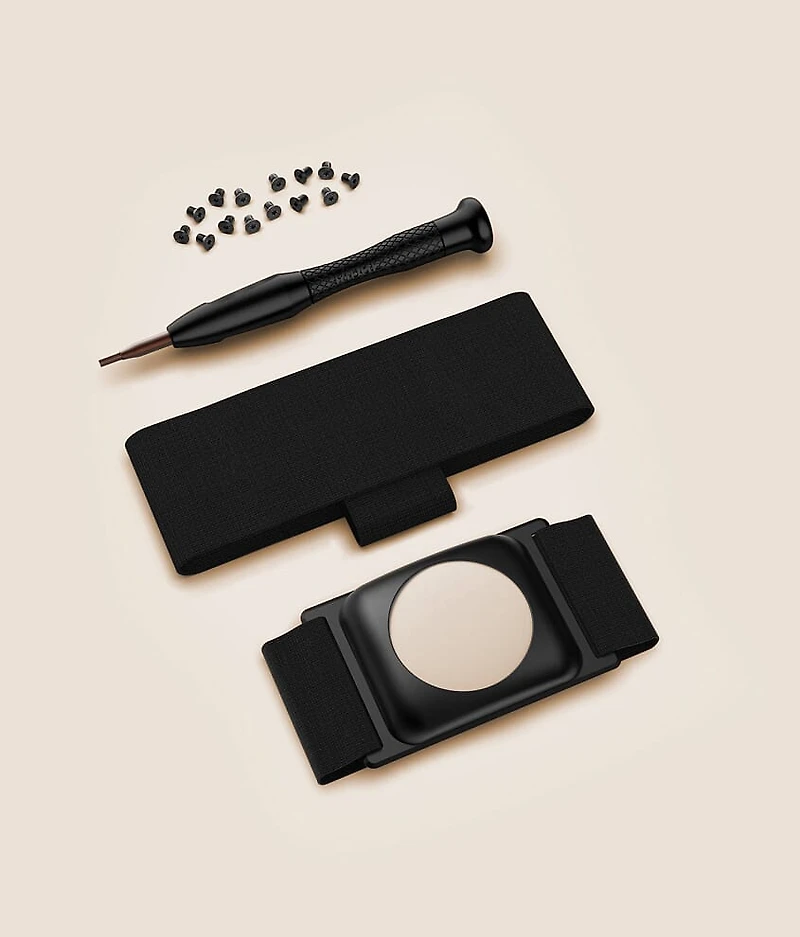 Metal AirTag holder Attaches to any Ridge wallet Includes extra elastic strap and replacement screws
