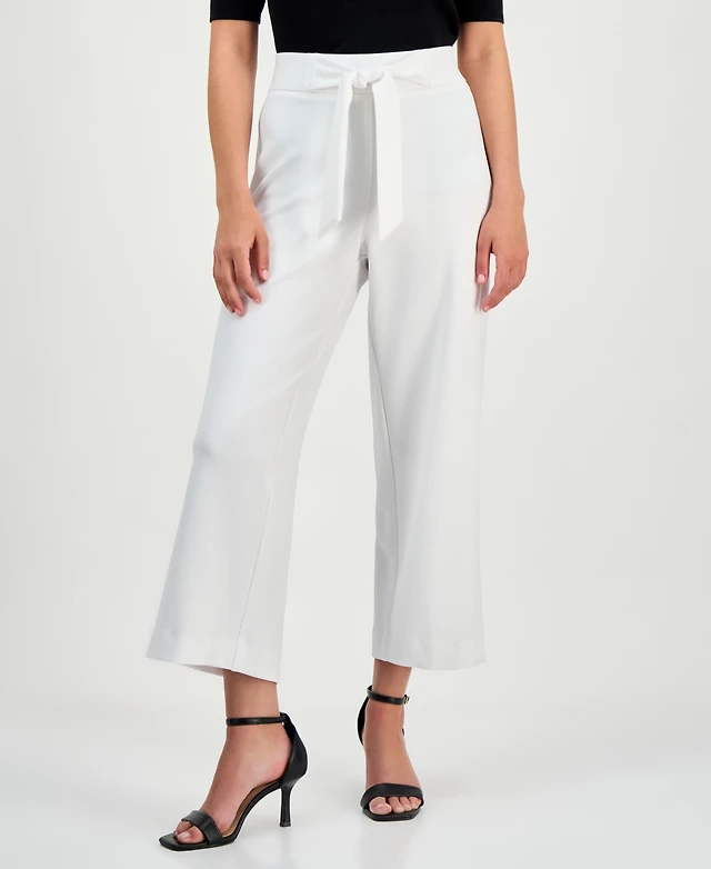Ak Anne Klein Petite Tie-Waist Wide-Leg Cropped Pants