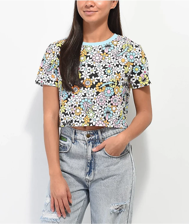 A.LAB Quinnie Trippy Floral Crop T-Shirt