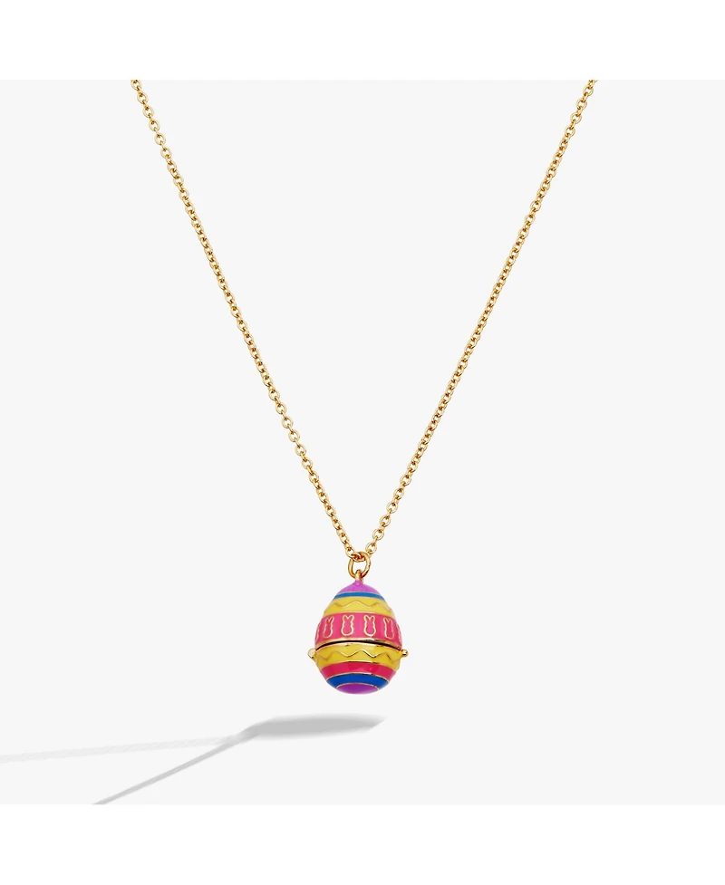 Hop into springtime style with this delightful Peeps Easter Egg Pendant Necklace. Featuring a gold-plated cable chain and a vibrant enameled egg adorned with the iconic Peeps bunny pattern, this charming locket opens to reveal a sweet pink bunny surprise inside. Perfect for layering with your favorite Alex and Ani pieces, this whimsical design captures the joy of the season and pairs beautifully with our bestselling Peeps collection. A playful treasure that celebrates the magic of Easter.