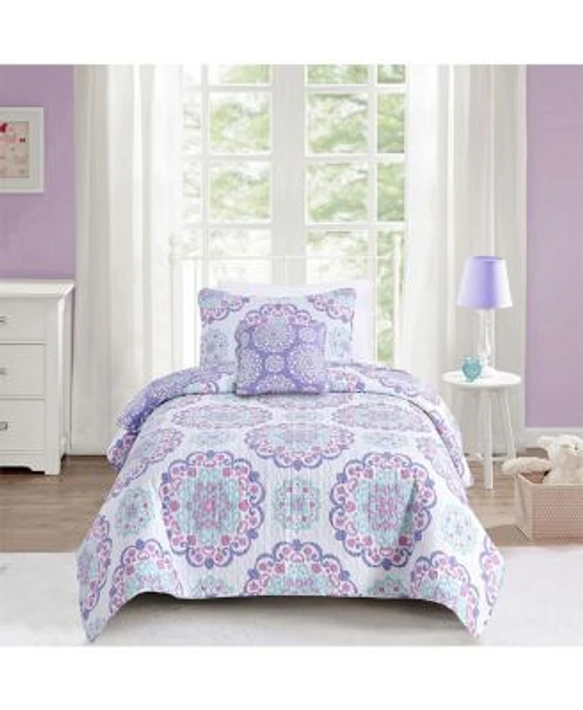 Alex Bella Vivian Purple 3 Piece All Season Reversible Cotton Quilt Set Twin