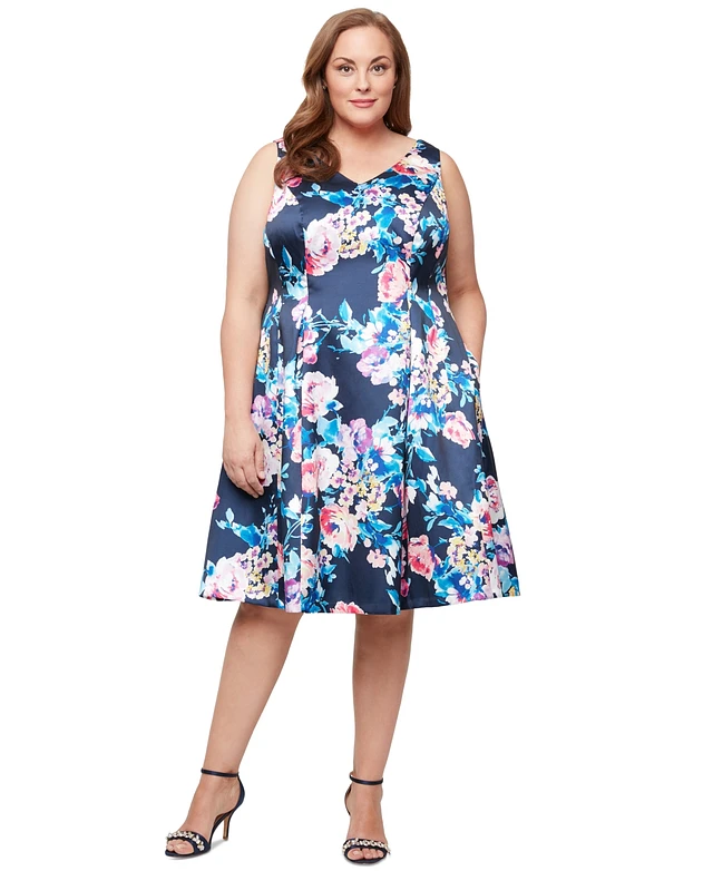 Alex Evenings Plus Printed V-Neck Sleeveless Dress