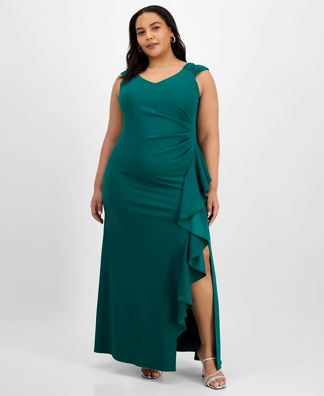 Alex Evenings Plus Ruched Ruffled Gown