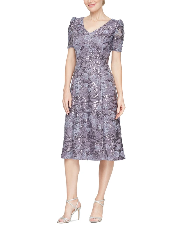 Alex Evenings Women's Sequined Embroidered Fit & Flare Dress