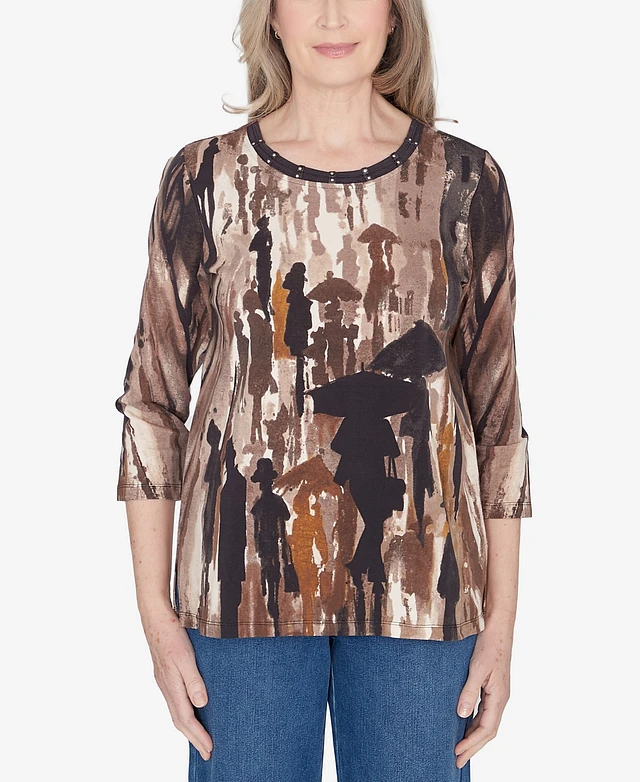 Alfred Dunner Women's Abstract Scroll Crew Neck Top