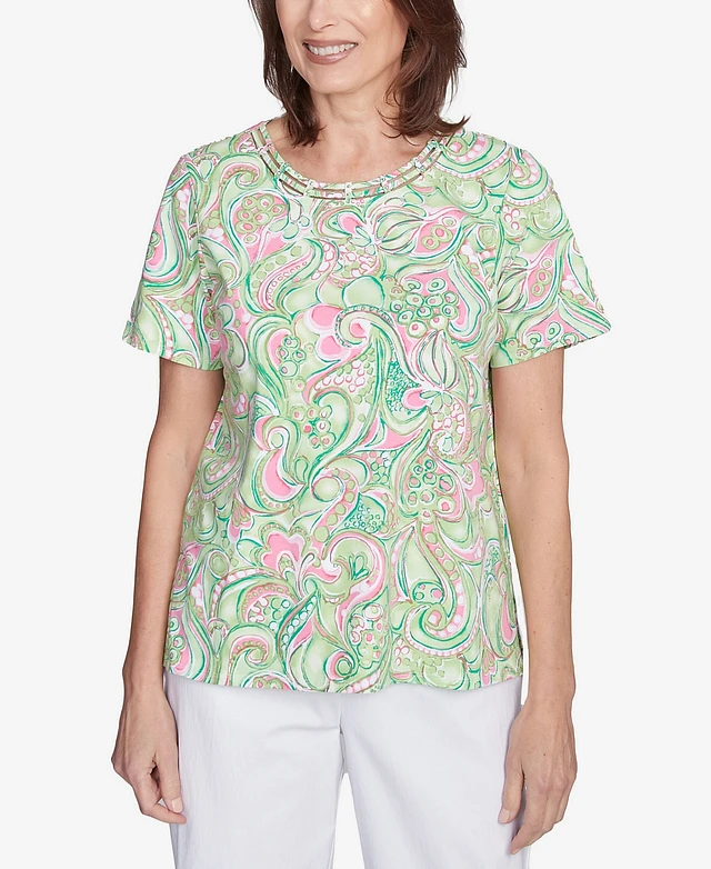 Alfred Dunner Women's Abstract Scroll Crew Neck Top