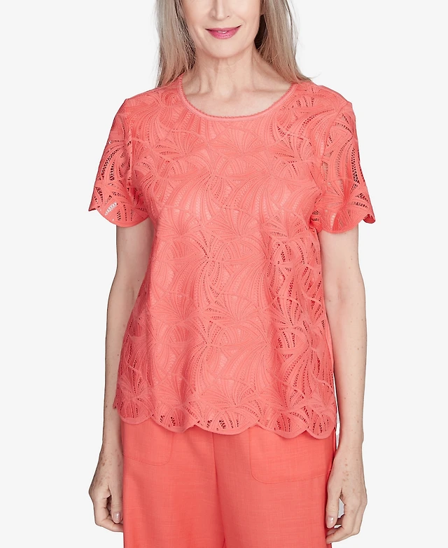 Alfred Dunner Petite Catalina Island Lace Trimmed Textured Top