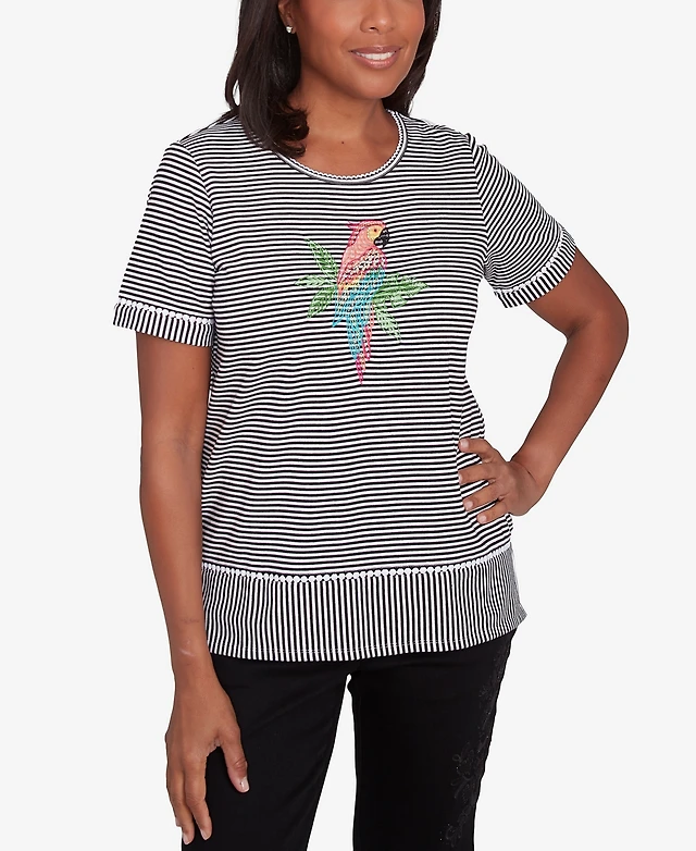 Alfred Dunner Petite Classics Crewneck Parrot Striped T-Shirt