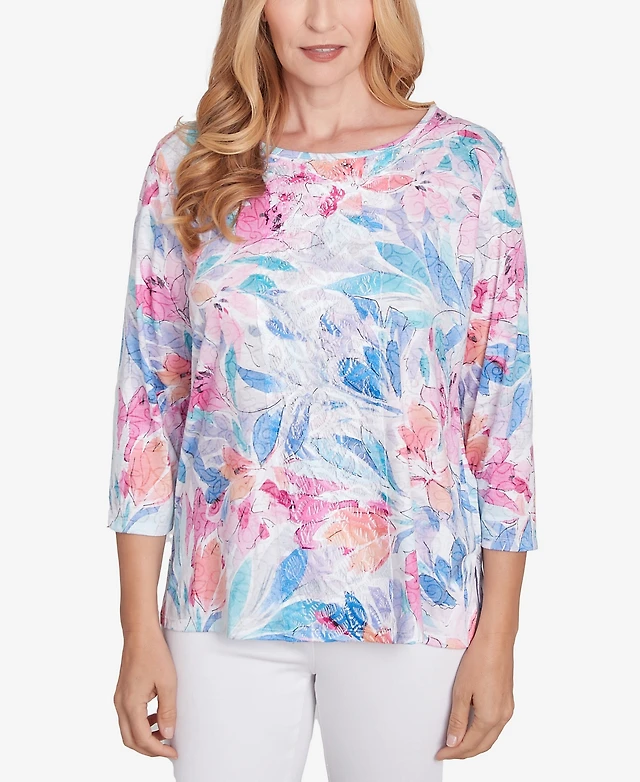 Alfred Dunner Women's Spring Butterfly Crew Neck Top