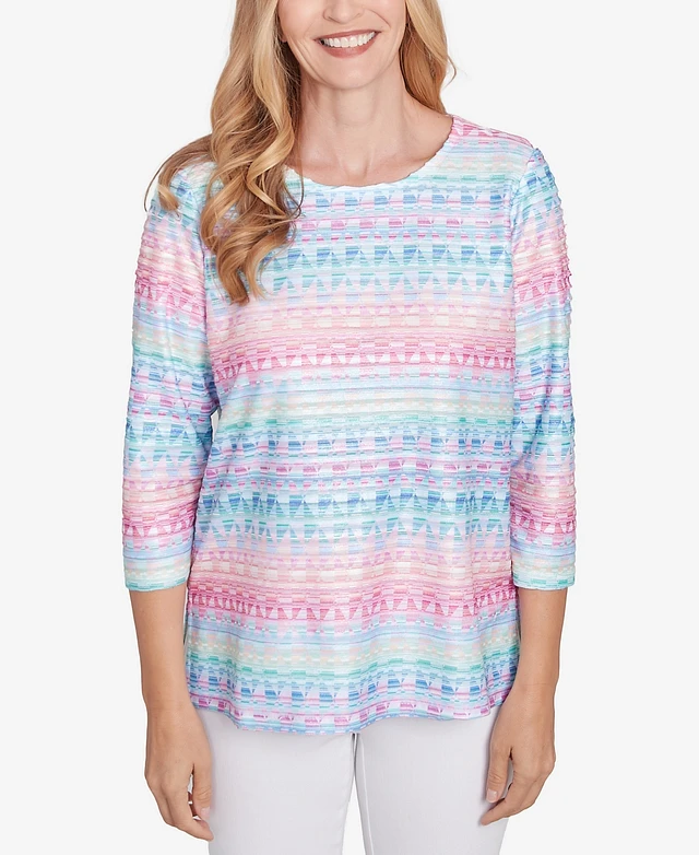 Alfred Dunner Petite Classics Geometric Crewneck Biadere Top