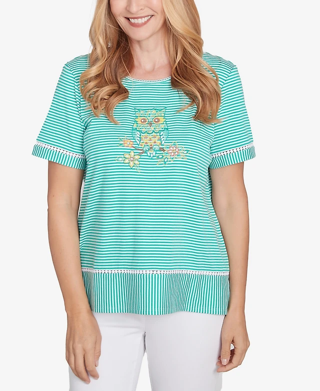 Alfred Dunner Petite Classics Owl Knit Striped T-Shirt