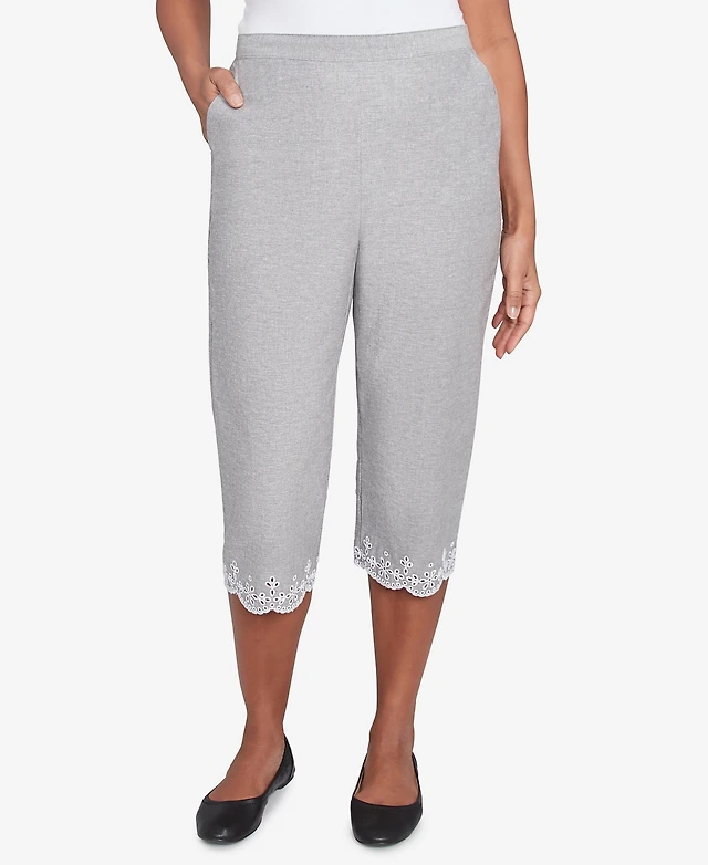 Alfred Dunner Petite Crystal Springs Eyelet Embroidered Capri Pants