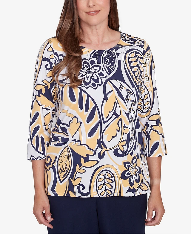 Alfred Dunner Petite Dramatic Paisley Crew Neck Top