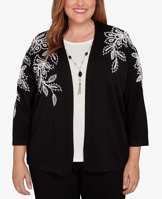 Alfred Dunner Plus Barcelona Floral Soutache Two One Sweater With Necklace