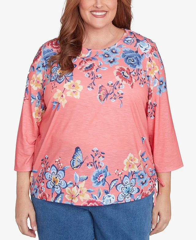 Alfred Dunner Plus Free Spirit Showstopping Crew Neck Floral Knit Top