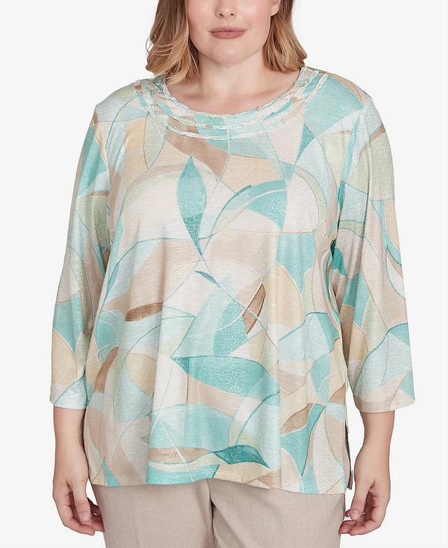 Alfred Dunner Plus Summer Solstice Abstract Stained Glass Crew Neck Top