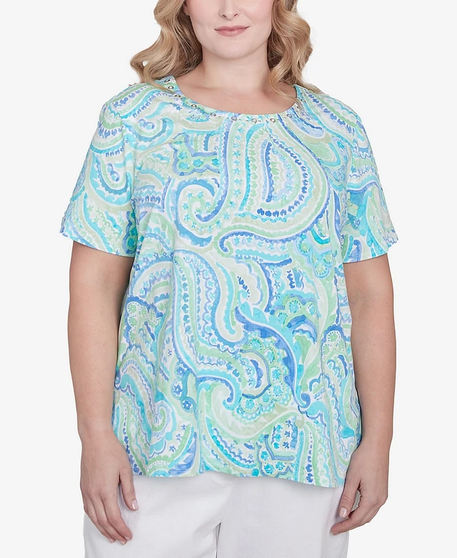 Alfred Dunner Plus Pleated Crew Neck Paisley Top