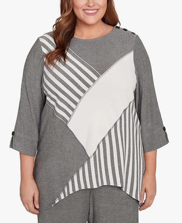 Alfred Dunner Plus Santa Barbara Diagonal Spliced Stripe Top