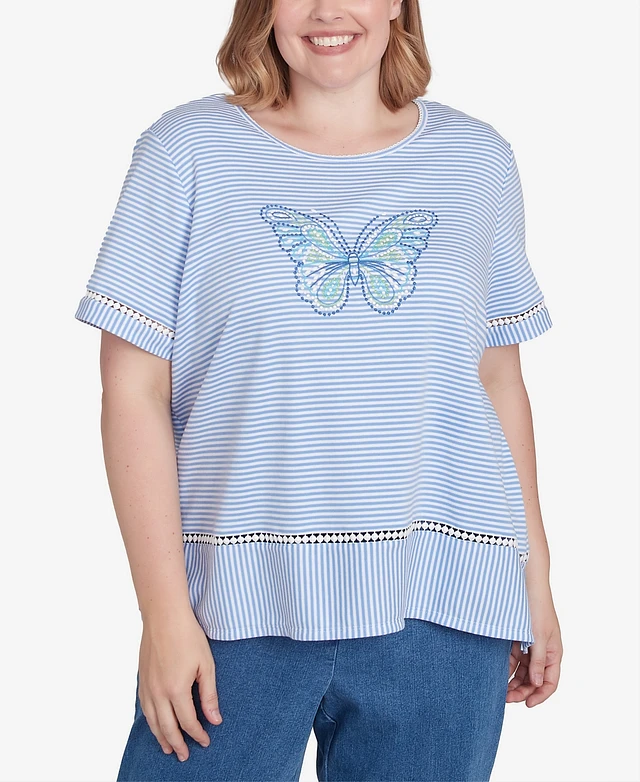 Alfred Dunner Plus Size Classic Striped Butterfly Short Sleeves Top