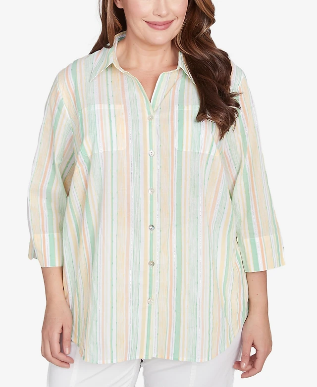 Alfred Dunner Plus Size Rise and Shine Sunny Stripes Button Down Top