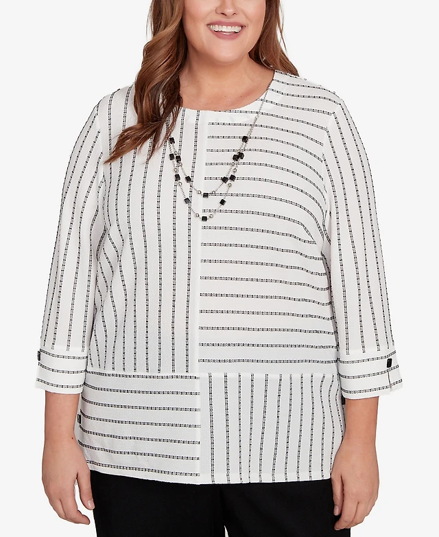 Alfred Dunner Plus Austin Novelty Spliced Textured Top with Necklace