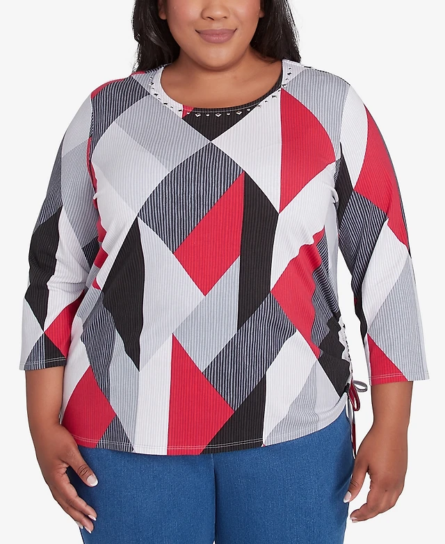 Alfred Dunner Women's Summer Solstice Abstract Stained Glass Crew Neck Top