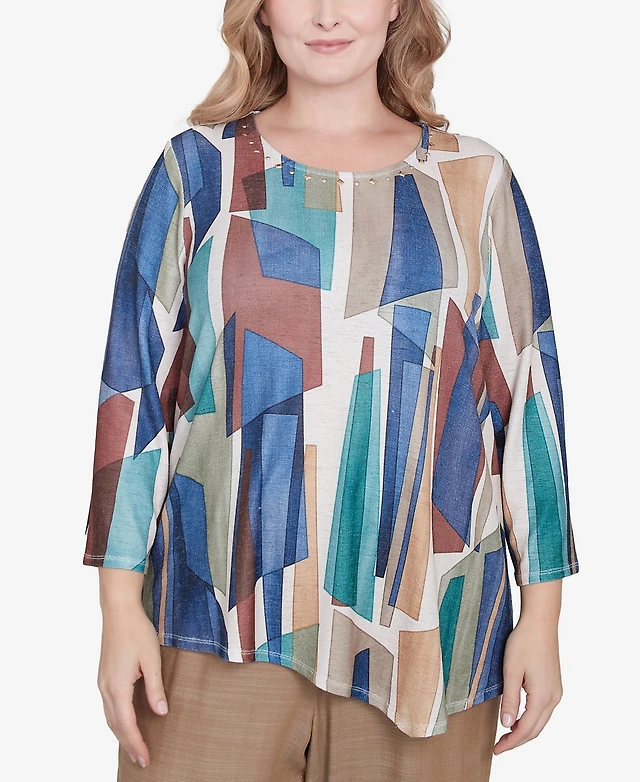 Alfred Dunner Plus Summer Solstice Abstract Stained Glass Crew Neck Top