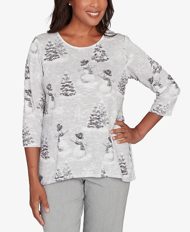 Alfred Dunner Stockbridge Playful Snowmen Scene Knit Top