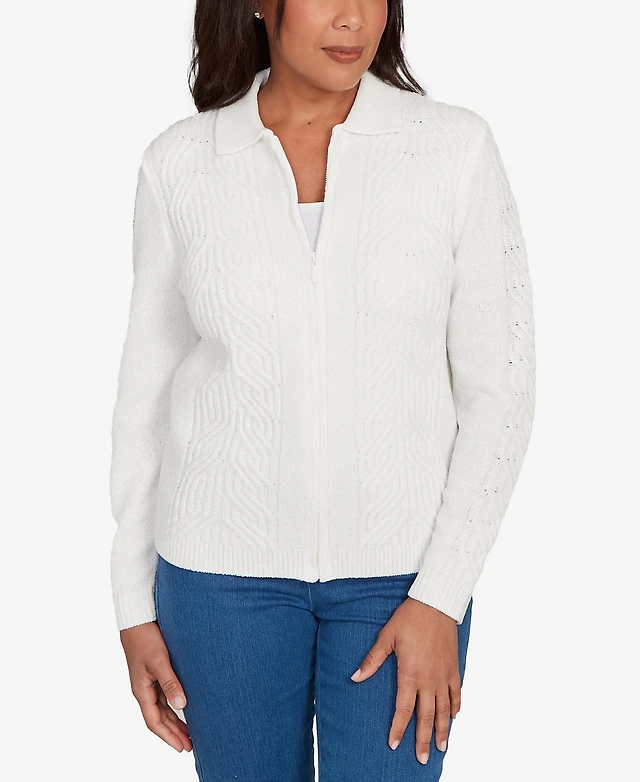 Alfred Dunner Plus Classic Zip-Front Chenille Collared Cardigan Sweater