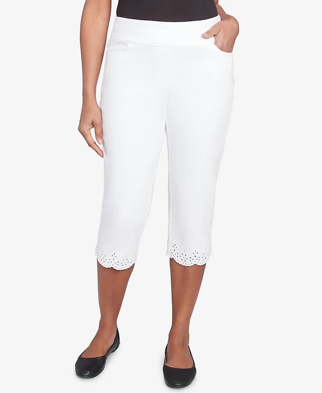 Alfred Dunner Women's Crystal Springs Eyelet Cuff Capri Pants