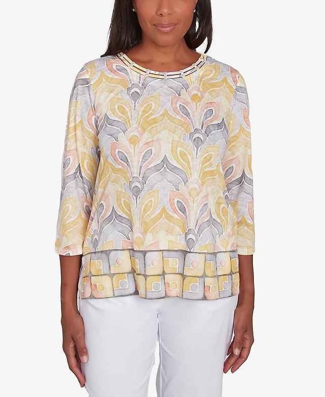 Alfred Dunner Women's Dress Code Geometric Medallion Crewneck Top