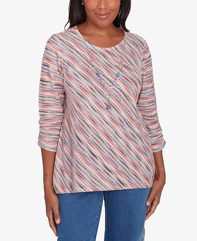 Alfred Dunner Women's Free Spirit Diagonal Space Dye Top with Necklace