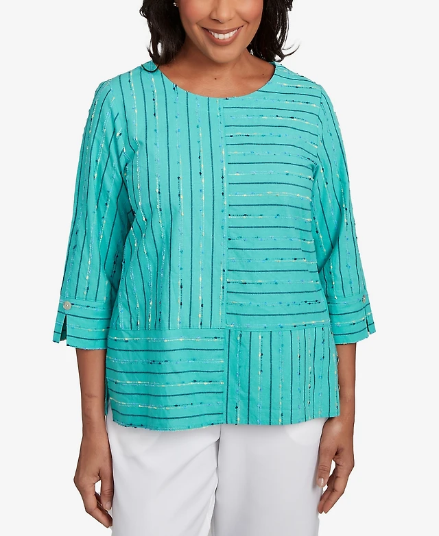 Alfred Dunner Women's Garden Party Spliced Stripe Texture Top