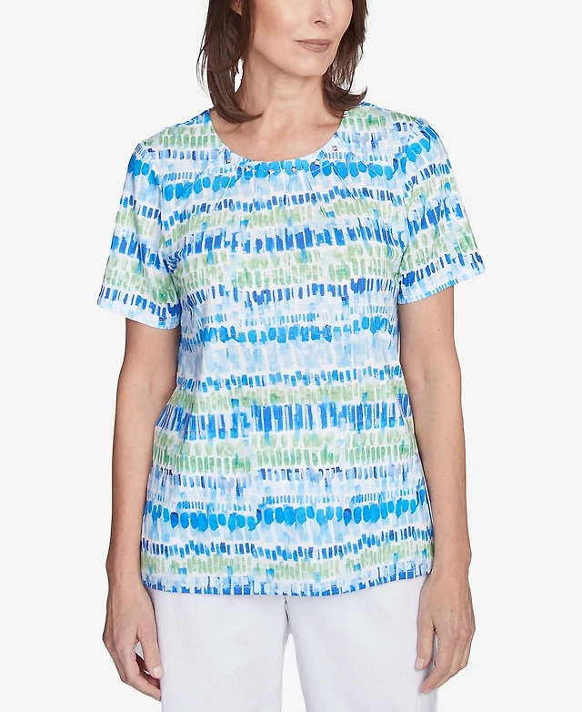 Alfred Dunner Women's Parrot Cay Tie Dye Chicklet Crew Neck Top