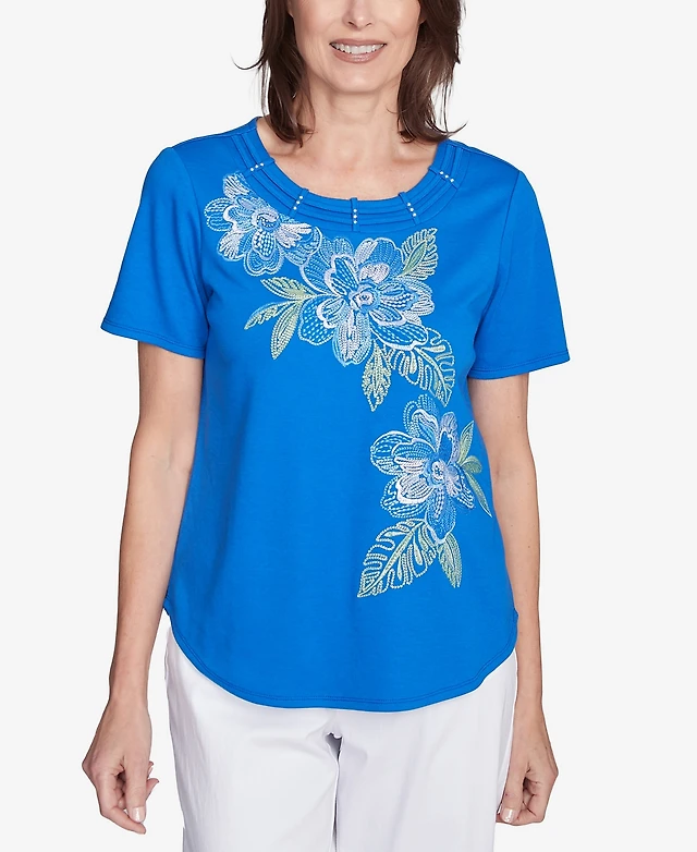 Alfred Dunner Women's Floral Leaf Embellished Top