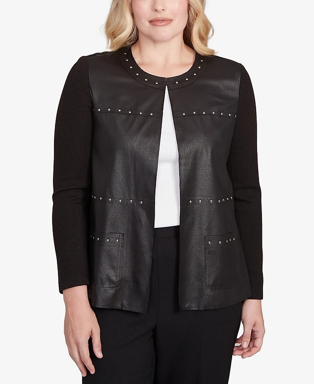 Alfred Dunner Women's Sweater Trim Faux Leather Jacket