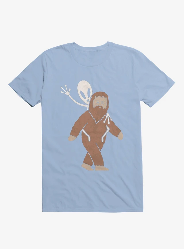 Alien And Sasquatch Piggyback Light Blue T-Shirt