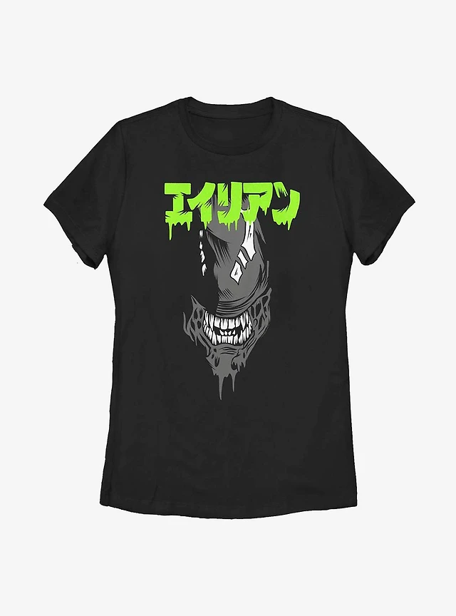 Alien Big Face Japanese Text Womens T-Shirt