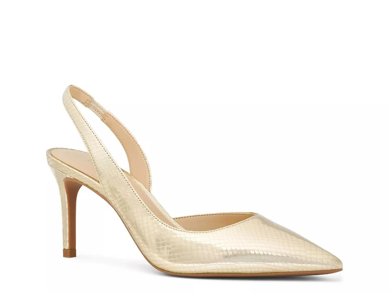Make a contemporary style statement with the Michael Michael Kors Alina Flex pump. A timeless upper with a pointed-toe front, slingback rear, and tapered heel complete this partial d'Orsay pump.