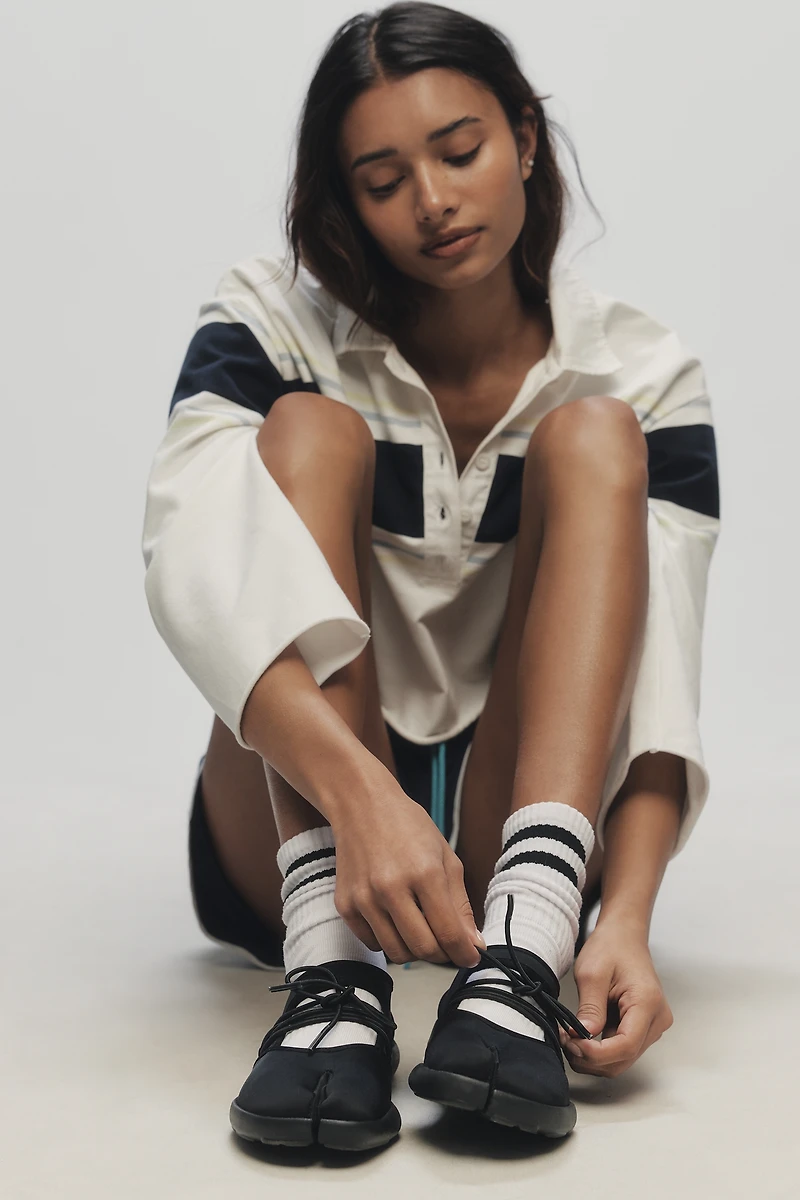 All Black Split-Toe Ankle-Wrap Flats
