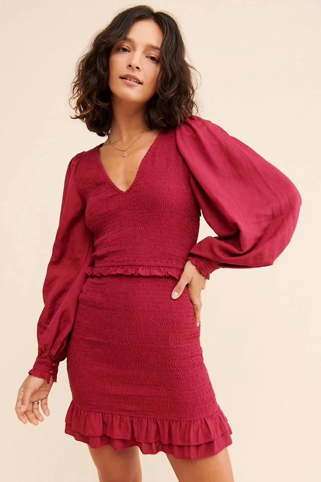 Long-Sleeve Smocked Mini Dress