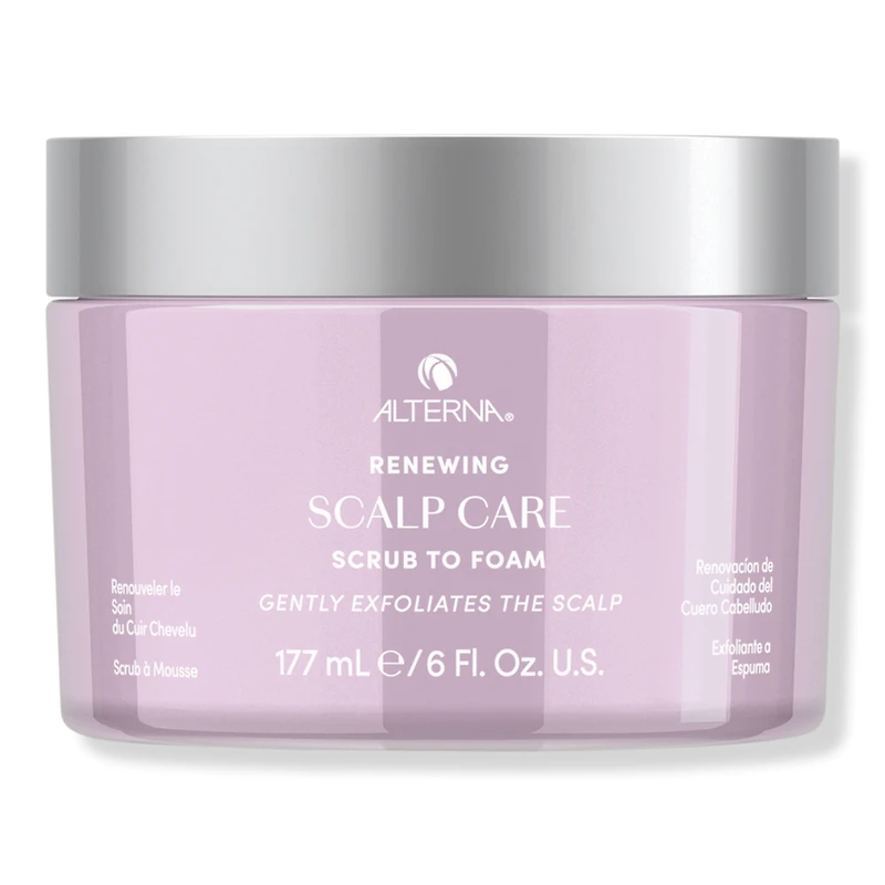 RENEW SCLP SCRUB TO FOAM 6OZ. Features: A luxurious scrub-to-foam cleanser that removes impurities and build up while adding shine and providing an optimal environment for healthy hair. Formula with Sweet Almond Oil increases moisture and hydration to the hair. Alterna's formulas are formulated without added parabens, SLS/SLES* sulfates, phthalates, synthetic color, gluten, mineral oil, formaldehydes and formaldehyde-releasing agents. *Sodium Lauryl Sulfate/Sodium Laureth Sulfate. Benefits: Gently exfoliates and removes dead skin, oil, dirt and product buildup on the scalp. Hydrates and moisturizes the scalp, helps relieve dryness. Leaves scalp feeling calm, soothed, less irritated and less dry. :