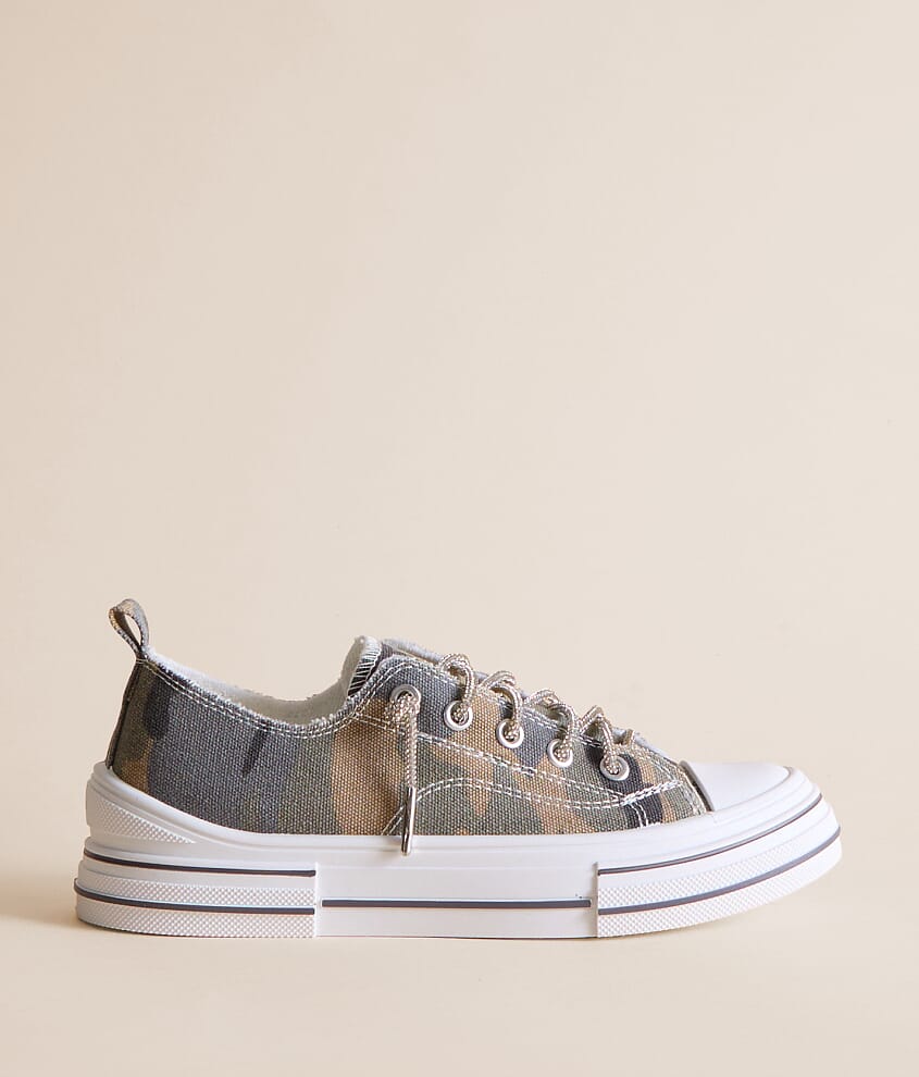 Washed canvas rhinestone lace-up sneaker Cushioned footbed