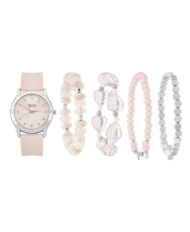 American Exchange Women's Matte Light Pink Silicone Strap Analog Watch 38mm with Stackable Bracelets Gift Set