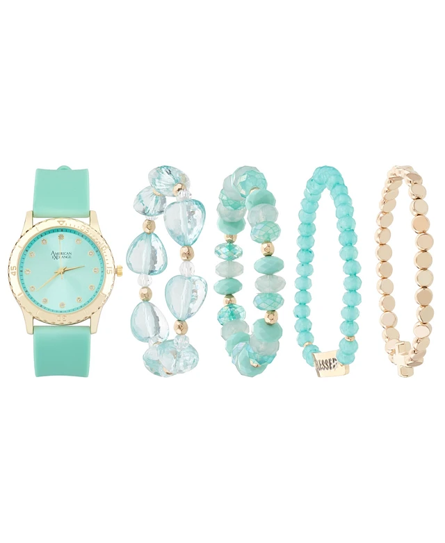 American Exchange Women's Matte Teal Silicone Strap Analog Watch 38mm with Stackable Bracelets Gift Set