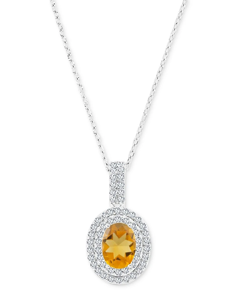 Amethyst (1-1/20 ct. t.w.) & Lab-Grown White Sapphire (1/2 Oval Halo Birthstone Pendant Necklace Sterling Silver, 16" + 2" extender (Also in Bloomington, MN