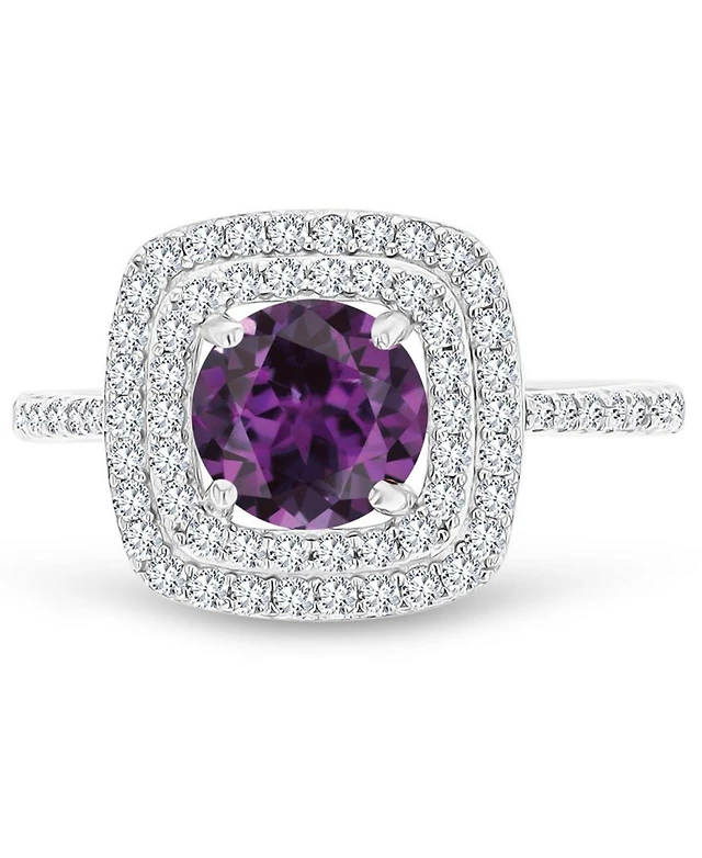 Amethyst (1-3/5 ct. t.w.) and Lab-Grown Sapphire (1/4 Halo Ring 10K White Gold