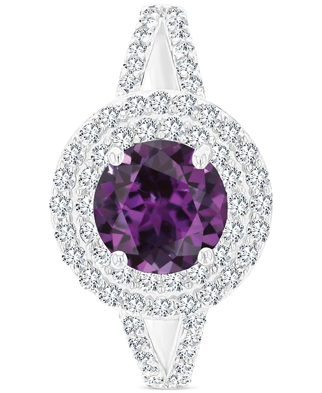 Amethyst (1-1/5 ct. t.w.) & Lab-Grown White Sapphire (5/8 Halo Birthstone Ring Sterling Silver (Also Additional Birthstones)