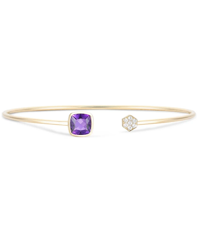 Amethyst (1-3/8 ct. t.w.) & Diamond (1/10 ct. t.w.) Wire Cuff Bangle Bracelet in 10k Gold (Also in Blue Topaz)