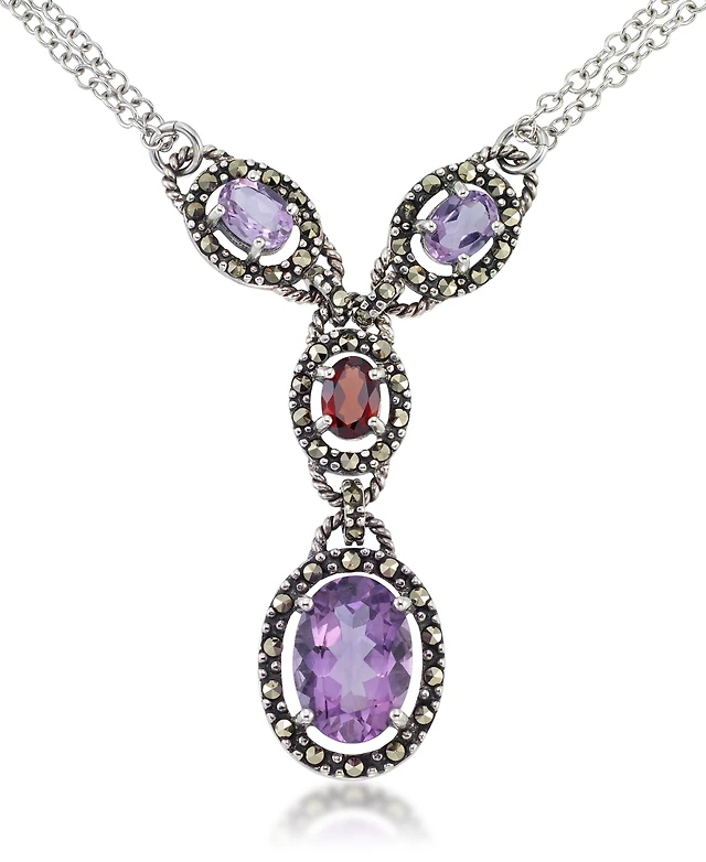 Amethyst (5-1/2 ct. t.w.) & Garnet (1 ct. t.w.) Marcasite Lariat 16"+2" Extender Necklace in Sterling Silver